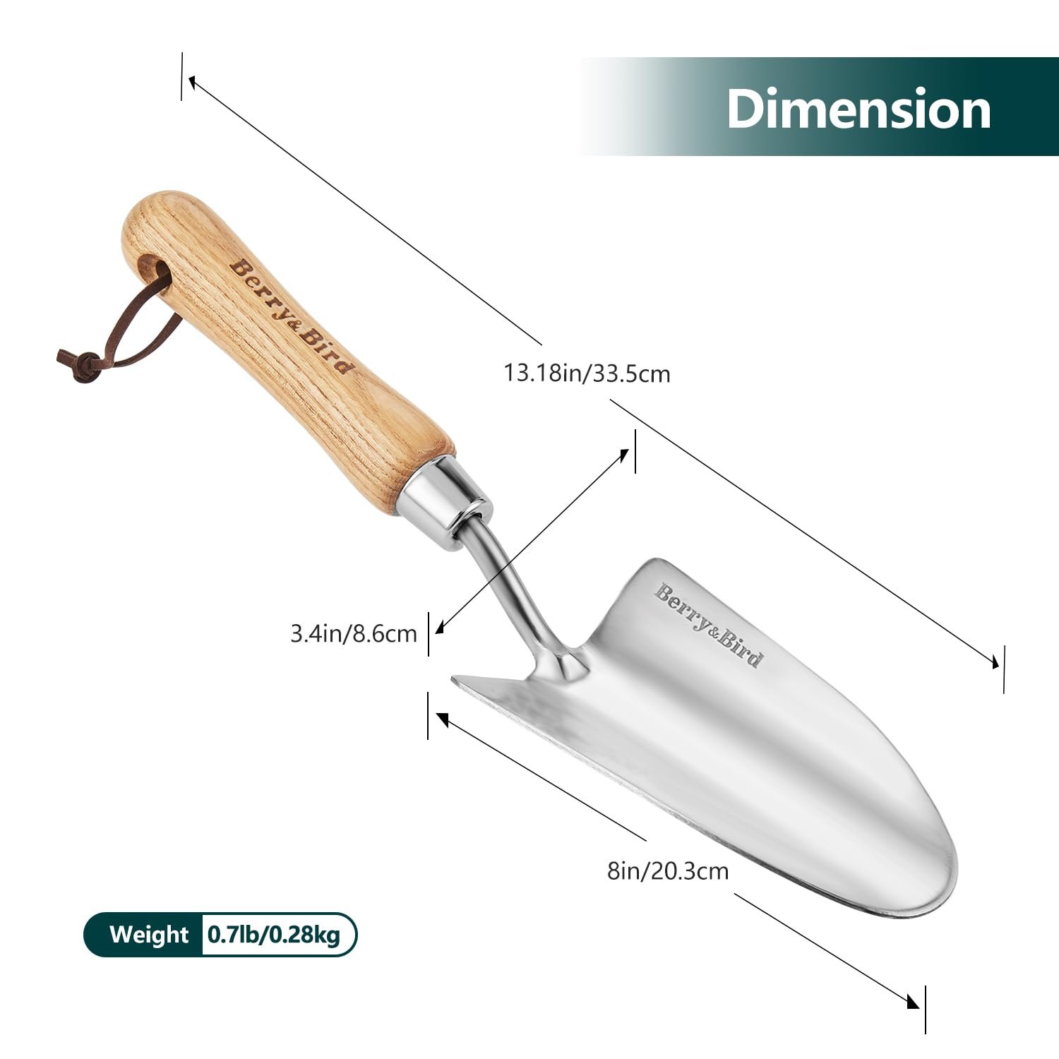This professional Stainless Steel Trowel is crafted through a traditional manual process, ensuring a tool that can reliably serve your garden for over a decade. The mirror-polished head is heat-treated to prevent bending and features high corrosion resistance to withstand various outdoor elements. By using this Stainless Steel Trowel, you benefit from minimal dirt adhesion, making it incredibly easy to clean after digging or composting.